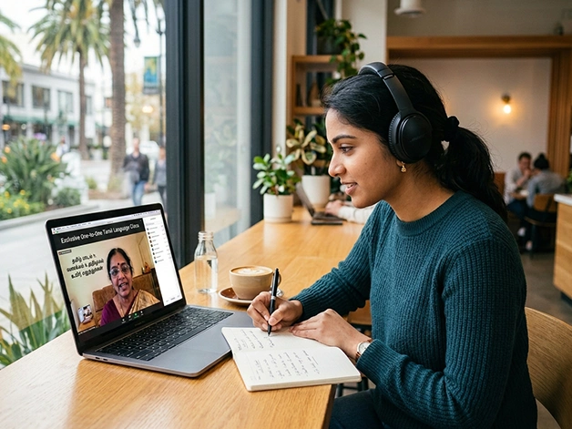This online tamil language course is meant for adults who need to develop clean and confident spoken tamil language for regular use. Through our guided live online sessions, beginners develop the ability to form sentences, improve pronunciation, and develop self-confidence required to tackle real-life conversations without any difficulties. The course strengthens fluency for personal interaction, relocation needs, and workplace communication.
